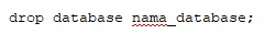 Jika database sudah tidak digunakan lagi, kita dapat menghapusnya. Proses penghapusan ini akan menghapus database, termasuk seluruh tabel dan isi dari tabel tersebut. Sebuah database yang telah dihapus tidak dapat ditampilkan kembali. Kita harus yakin bahwa database tersebut memang tidak akan digunakan lagi.