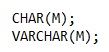 M adalah jumlah karakter yang akan dialokasikan oleh MySQL, jumlah maksimal M adalah 255 karakter untuk tipe data CHAR dan 65,535 karakter untuk tipe data VARCHAR. Jika nilai M tidak di tentukan, maka nilai default M=1.