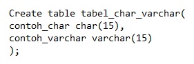 Format query untuk membuat tipe data CHAR dan VARCHAR: