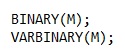 M adalah jumlah karakter yang akan dialokasikan oleh MySQL, jumlah maksimal M adalah 255 karakter untuk tipe data BINARY dan 65,535 karakter untuk tipe data VARBINARY. Jika nilai M tidak di tentukan, maka nilai default M=1.